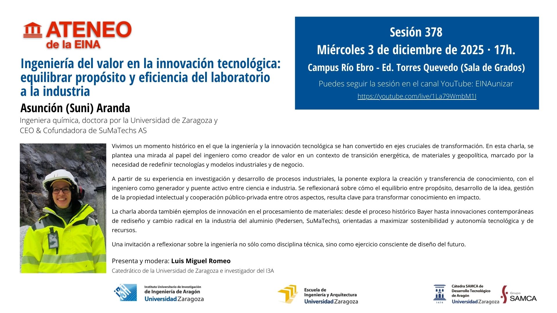 El miércoles 3 de diciembre, a las 17h., celebraremos una nueva sesión del Ateneo de la EINA, en esta ocasión protagonizada por Asunción (Suni) Aranda.