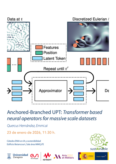 El próximo viernes 23 de enero, a las 11.30h., en la Sala del área de Mecánica de Medios Continuos y Teoría de Estructuras, en el edificio Betancourt, tendrá lugar la conferencia Anchored-Branched UPT: Transformer based neural operators for massive scale datasets, impartida por Quercus Hernández (Emmi AI).