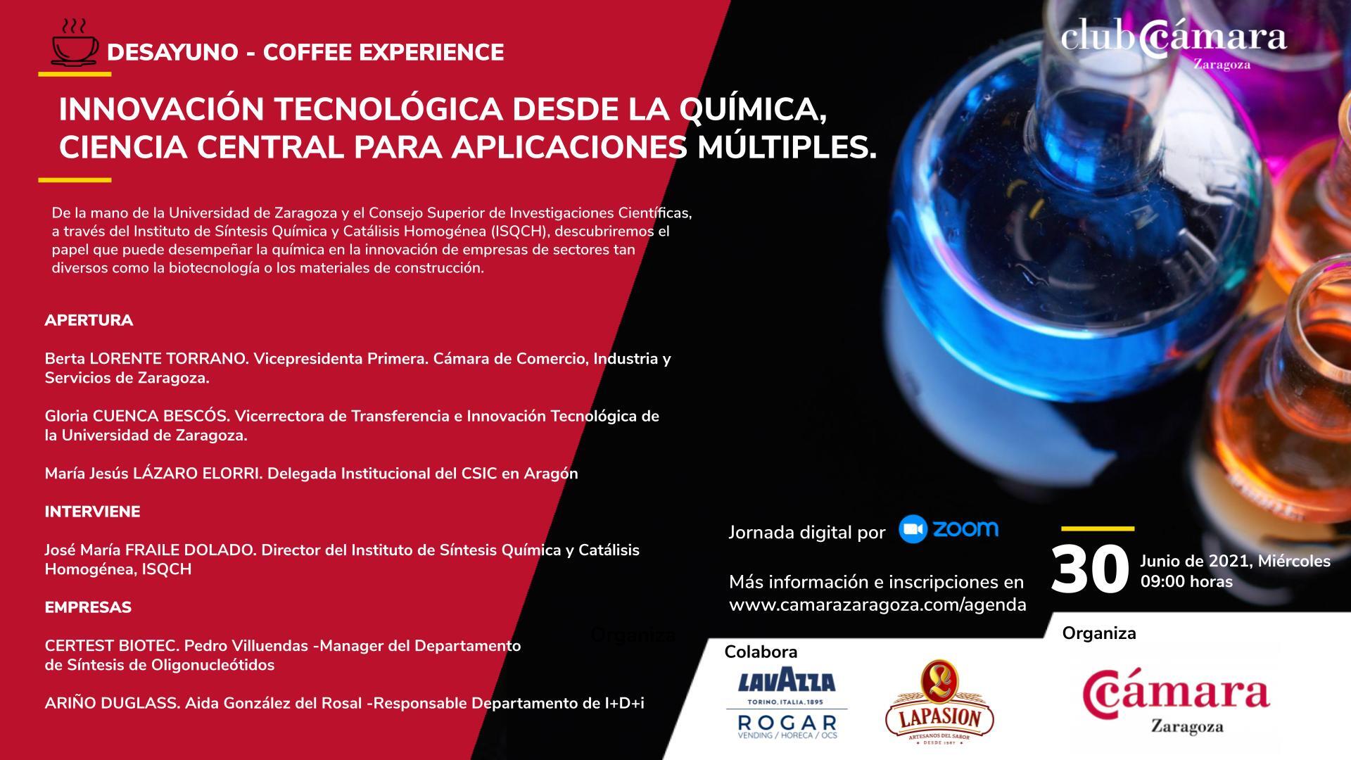 Desayuno coffee experience "Innovación Tecnológica desde la química, ciencia central para aplicaciones múltiples" (30 junio, 9h)