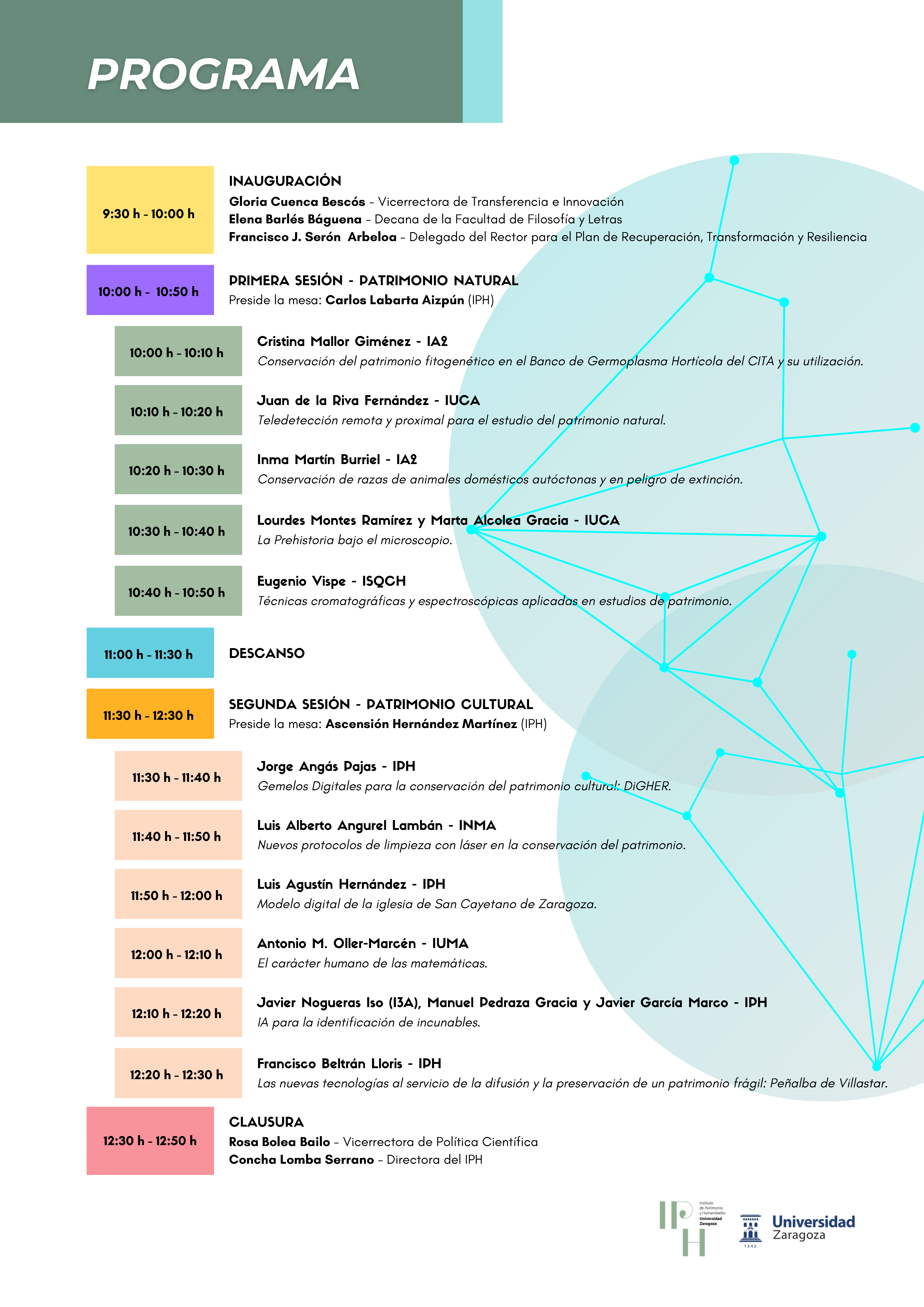 Bajo el título "Patrimonio Cultural y Natural. Tecnologías Aplicadas", la Jornada tiene como objetivo fomentar la participación del mayor número de investigadores de los institutos cuyos trabajos y ámbitos de conocimiento mantengan alguna conexión con las tecnologías aplicadas al patrimonio.